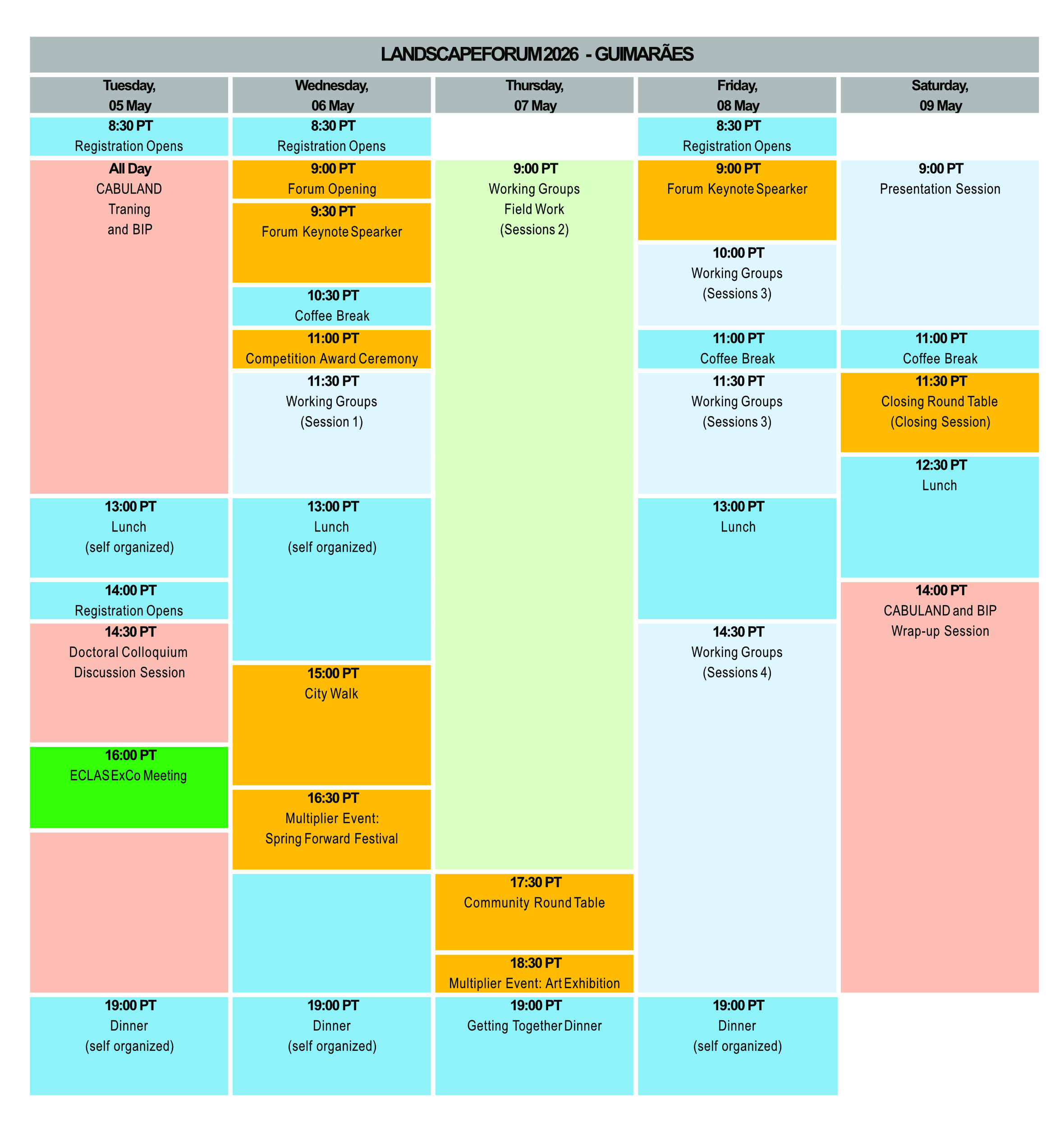 Forum Process & Programme 2026 Forum Process & Programme 2026 The forum will follow the usual pattern of a four days event combining workshops, excursions, lectures and side events. Here is the forum schedule (status: February 2026):